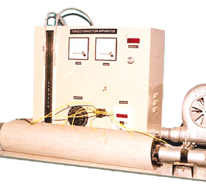 The pipe surface temperature is measured at various points along the length of pipe. Temperatures of air at inlet and outlet of test section are measured. Thus the students can calculate local and overall heat transfer coefficients in forced convection, at various airflow rates and various heat flux values.